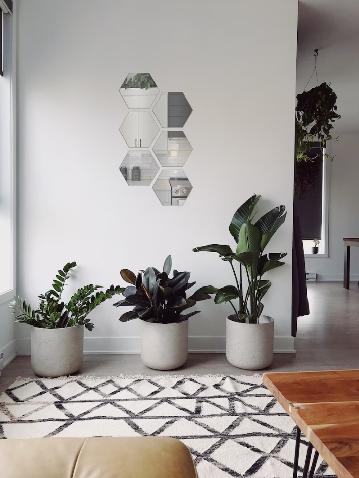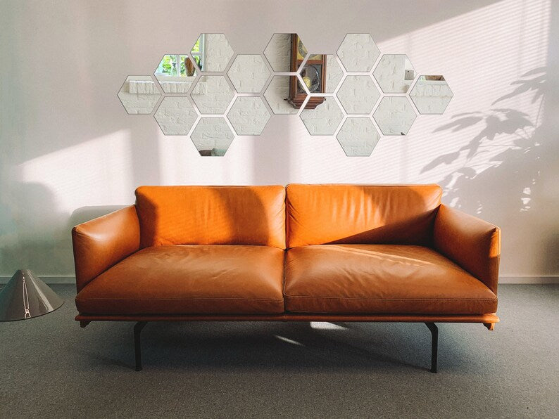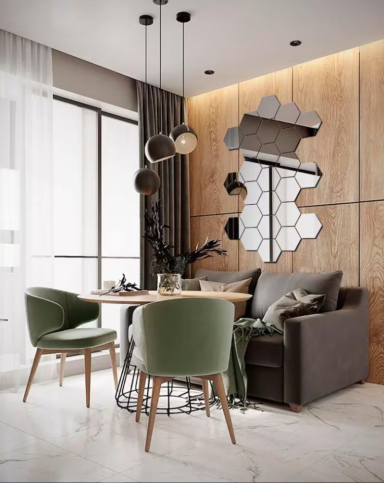 Add a modern and stylish touch to any space with these elegant silver hexagon acrylic mirrors.